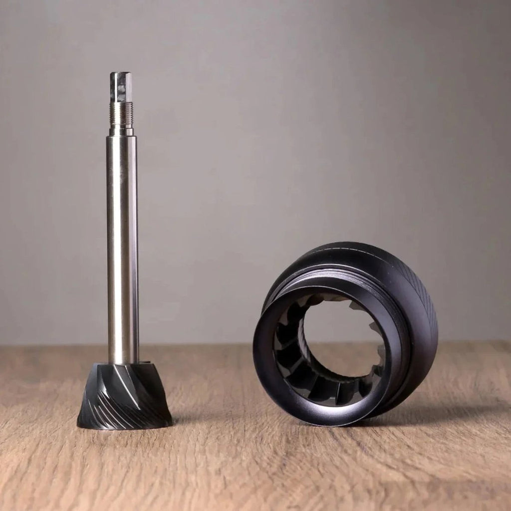 La muela del molinillo fue calibrada y fijada por el equipo de 1Zpresso. Desmontar la muela puede afectar la precisión de la molienda y dañar el molinillo. Tenga cuidado al desmontar el molinillo.