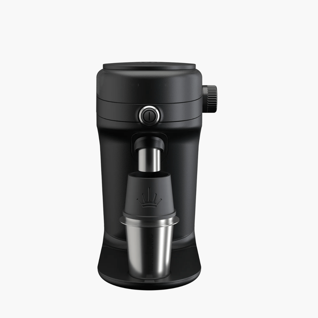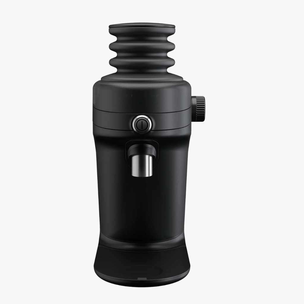 Le moulin comprend également plusieurs options de réservoir : un couvercle anti-éclatement de 34 g, une extension de 105 g pour les plus grandes quantités et un soufflet pour éliminer les restes de grains moulus. Une tasse doseuse en acier inoxydable et un entonnoir antistatique sont fournis en standard, ce qui permet de créer un flux de travail fluide et professionnel à domicile.