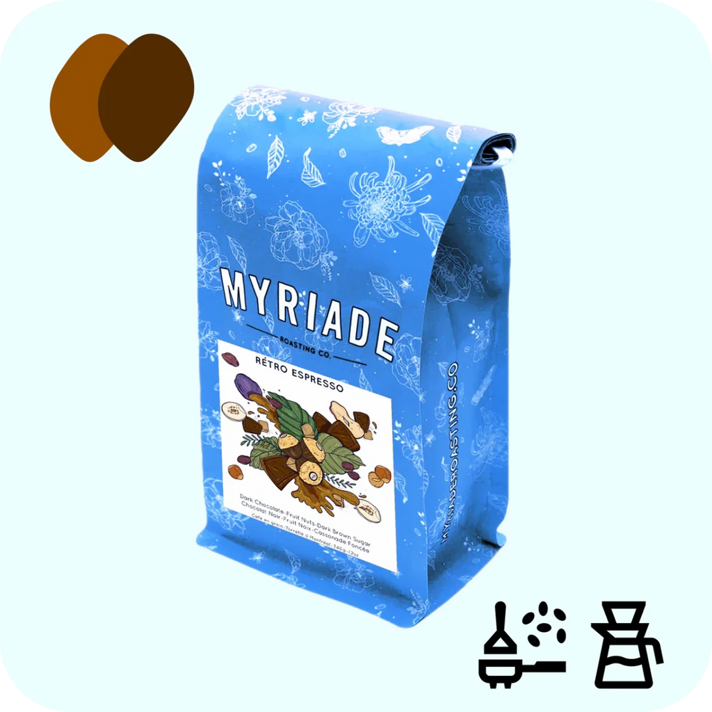 Ce mélange a été créé sur la base d'années de service d'espresso dans nos cafés. Nous avons voulu créer un mélange suffisamment polyvalent pour avoir un goût sucré et chocolaté à lui seul, ainsi que pour transformer le lait en glace au chocolat. La plus grande partie de ce mélange est réalisée à partir de Sitio Colina, un Brésil transformé naturellement provenant d'un seul lot de ferme. C'est l'un des lots brésiliens les plus sucrés et les plus savoureux que nous ayons jamais échantillonnés. Les 25 % restants sont constitués de la Colombie lavée de Bilbao, qui donne à ce mélange une ambiance générale de gâteau de la Forêt-Noire
